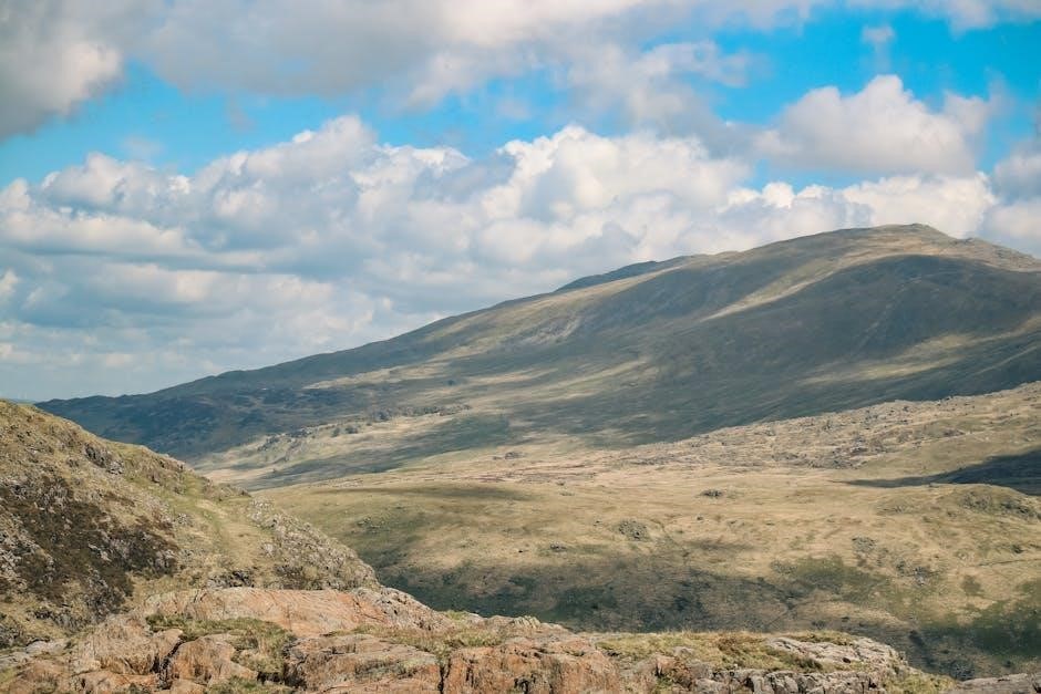 The book expertly navigates the complex landscape of scree slopes, rocky ridges, and remote valleys․ Wainwright’s detailed route descriptions and hand-drawn maps are crucial for safe exploration․ He vividly portrays the grandeur and beauty of these fells, conveying his deep connection to the terrain․ For walkers seeking a demanding adventure and breathtaking views, The Southern Fells is an essential companion, showcasing the wild heart of Lakeland․