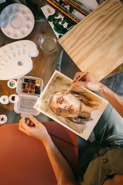 PDF guides emphasize the importance of fully drying the lifting preparation before applying watercolour, preventing smudging or mixing. Once the painting is complete, the preparation is gently removed, revealing the untouched paper beneath. This method is particularly useful for creating bright reflections, delicate foliage, or complex patterns. Mastering this technique expands your control and precision in watercolour painting.